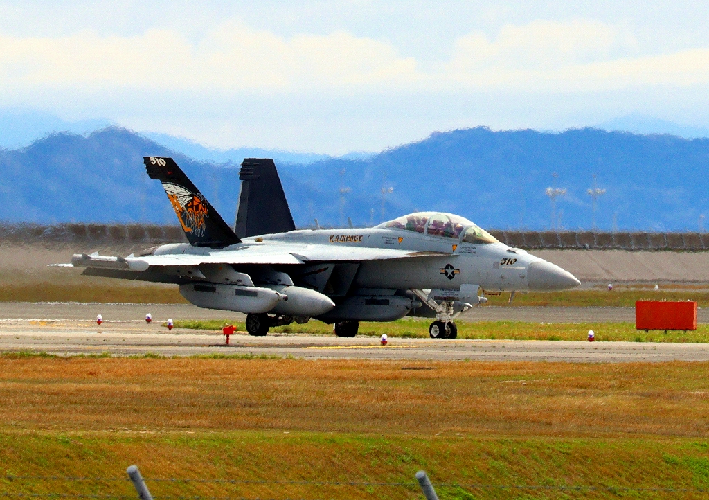 米海軍艦載機 EA-18G グラウラー 電子戦機戦闘攻撃機(三沢基地)、NL、510番機が着陸