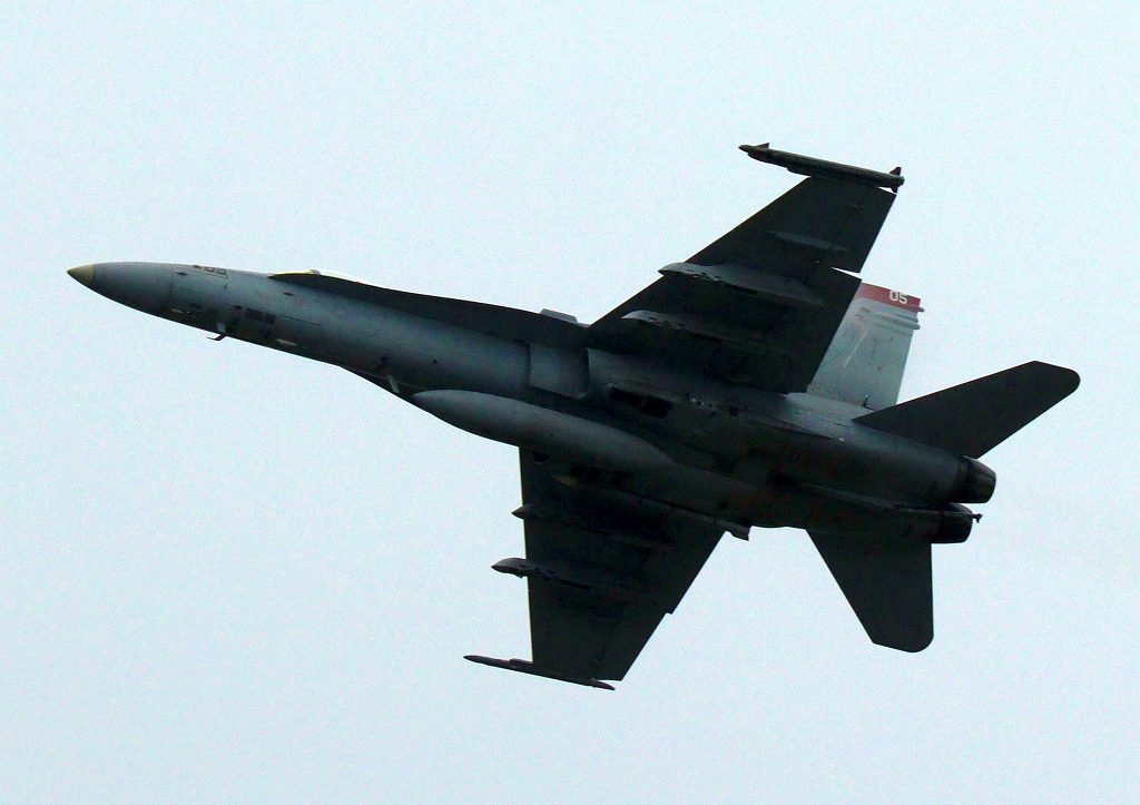 米海兵隊 F/A-18C ホーネット 戦闘攻撃機(岩国基地)、WT、05番機が離陸