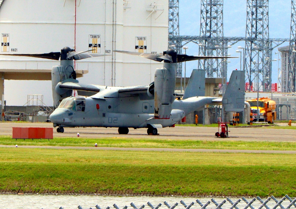 展示用外来機駐機場に米海兵隊 MV-22B オスプレイ(普天間基地)、「虎」、ET、02番機