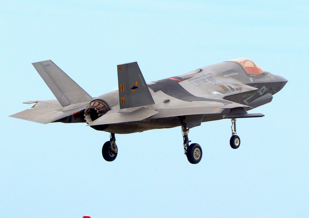 米海兵隊 F-35B ライトニングⅡ 戦闘機(岩国基地)、DT、01番機が着陸