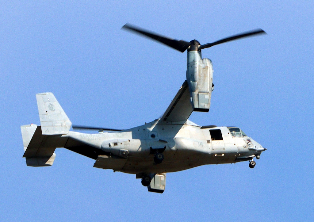 米海兵隊 MV-22B オスプレイ(普天間基地)、「竜」、EP、14番機が着陸