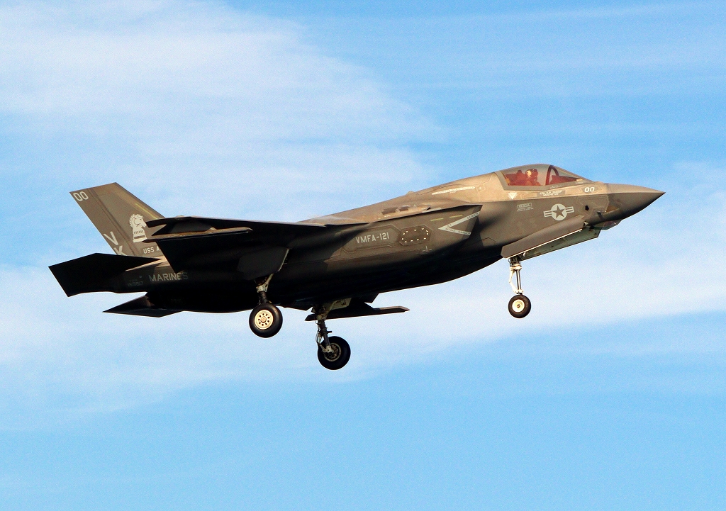 米海兵隊 F-35B ライトニングⅡ 戦闘機(岩国基地)、VK、00番機が旋回、着陸