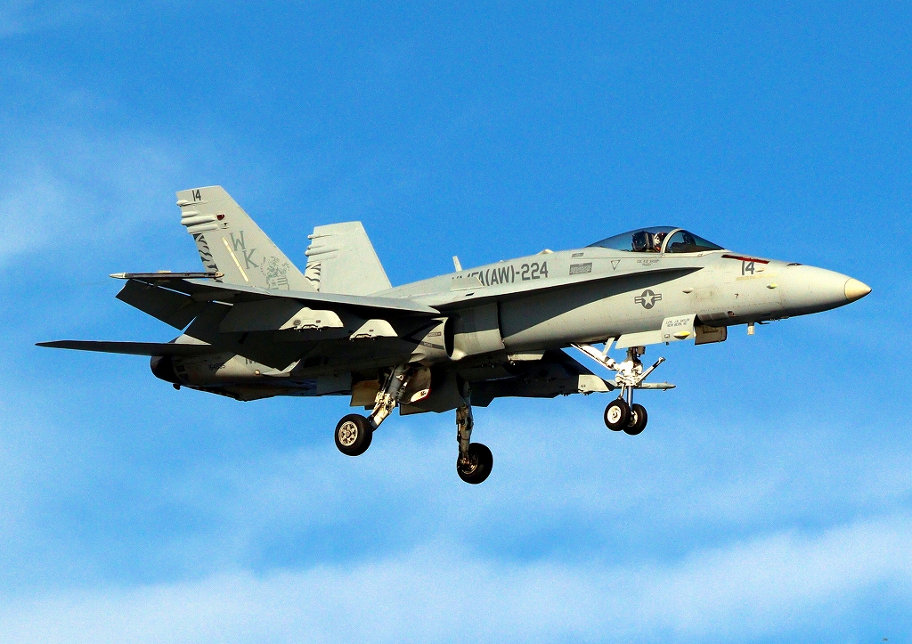 米海兵隊 F/A-18C ホーネット 戦闘攻撃機(岩国基地)、WK、14番機が帰還