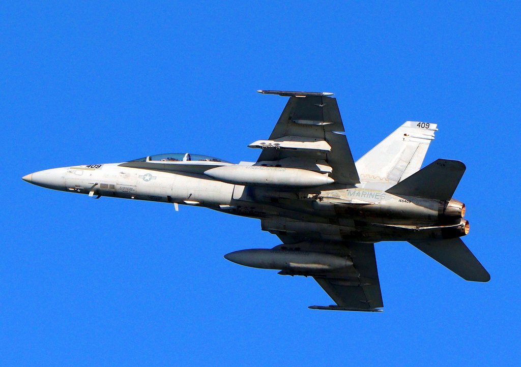米海兵隊 F/A-18D ホーネット 戦闘攻撃機(岩国基地)、DR、409番機が離陸