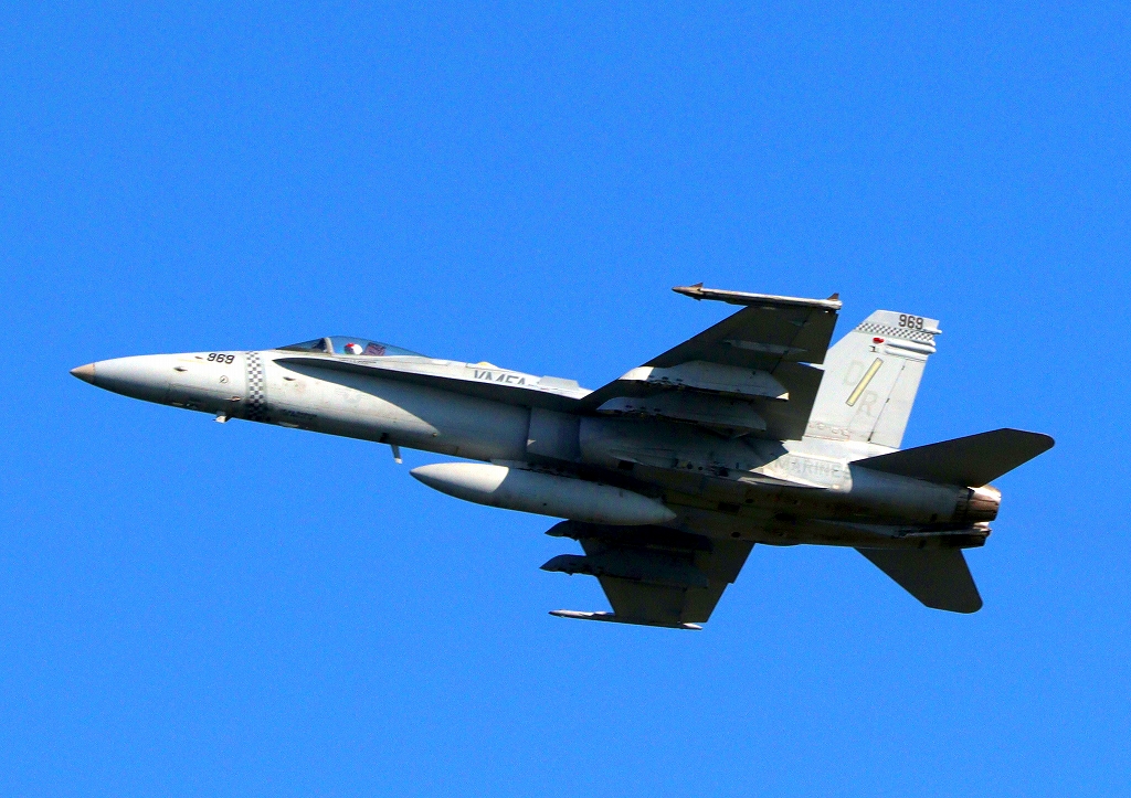 米海兵隊 F/A-18C ホーネット 戦闘攻撃機(岩国基地)、DR、969番機が離陸