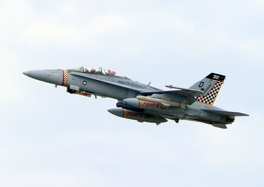 米海兵隊 F/A-18D ホーネット 戦闘攻撃機(岩国基地)、DR、312番機が離陸