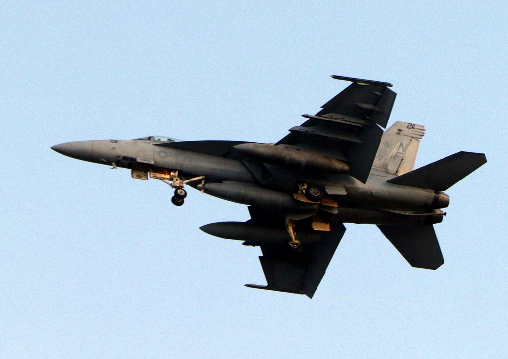 2024年12月11日(水)米海軍艦載機 F/A-18E スーパーホーネット 戦闘攻撃機(岩国基地)、NF、211番機が離陸