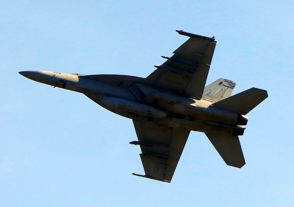 米海軍艦載機 F/A-18E スーパーホーネット 戦闘攻撃機(岩国基地)、NF、305番機が離陸