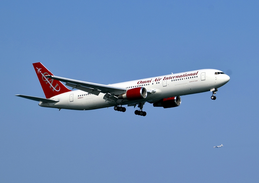 米軍チャーター民間輸送機 オムニ・エアー・インターナショナル ボーイング767 N486AXが着陸