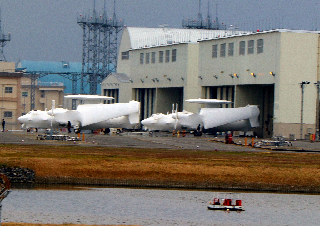 航空自衛隊三沢基地納入用、E-2D アドバンスド・ホークアイ、2機目、3機目は米海兵隊格納庫に入ります。