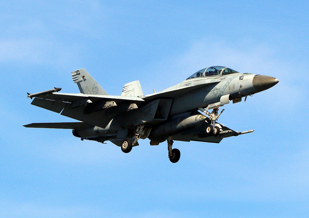 米海軍艦載機 F/A-18F スーパーホーネット 戦闘攻撃機(岩国基地)、NF、110番機が帰還