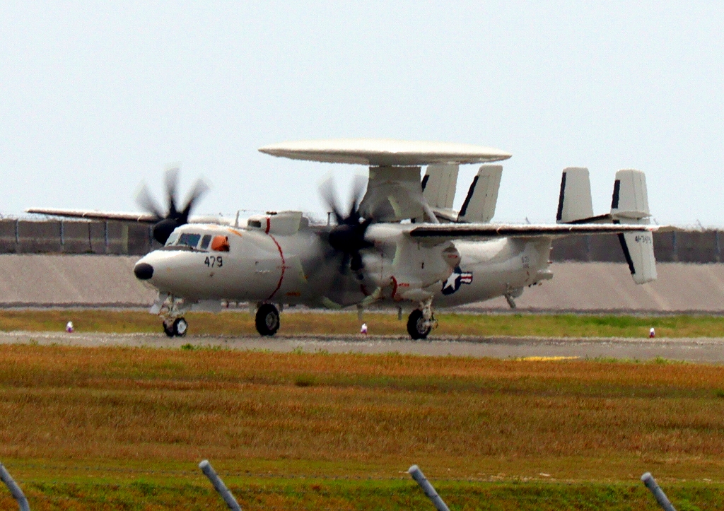 2024年4月5日(金)航空自衛隊納入用 E-2D アドヴァンスド・ホークアイ 早期警戒機、479番機は滑走路の北でメンテナンス。