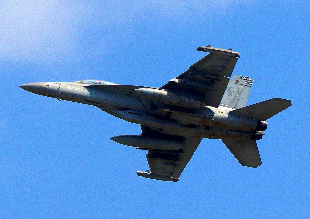 米海軍艦載機 EA-18G グラウラー 電子戦戦闘攻撃機(岩国基地)、NF、505番機が離陸