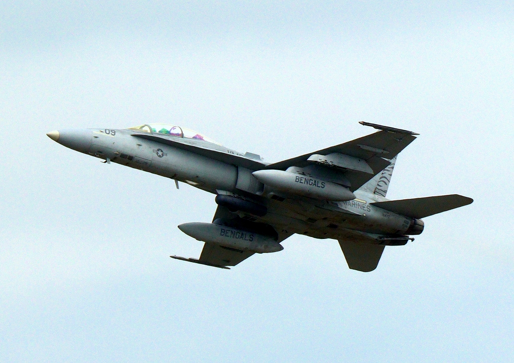 米海兵隊 F/A-18D ホーネット 戦闘攻撃機(岩国基地)、WK、09番機が離陸
