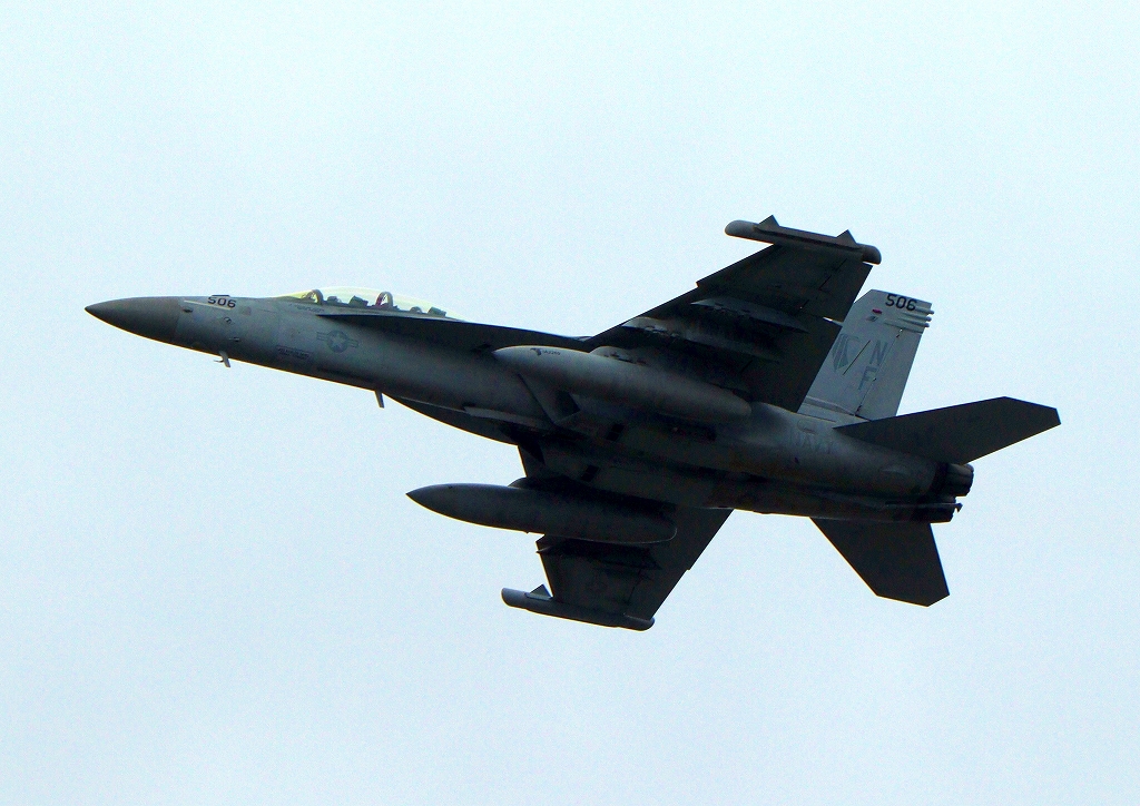 米海軍艦載機 EA-18G グラウラー 電子戦戦闘攻撃機(岩国基地)、NF、506番機が離陸
