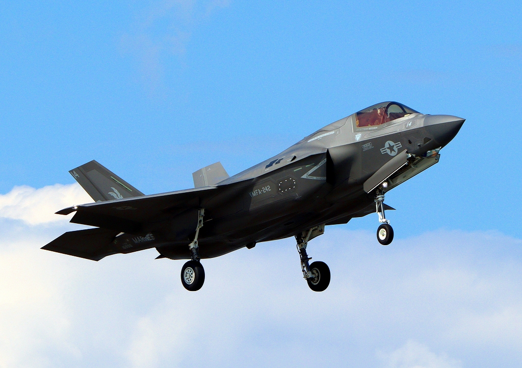 米海兵隊 F-35B ライトニングⅡ 戦闘機(岩国基地)、DT、14番機が帰還、着陸