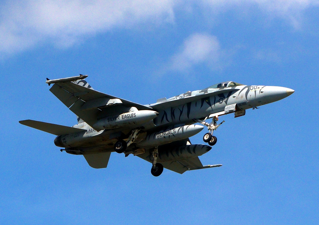 米海兵隊 F/A-18C ホーネット 戦闘攻撃機(岩国基地)、WK、00番機が帰還、旋回(2周目)