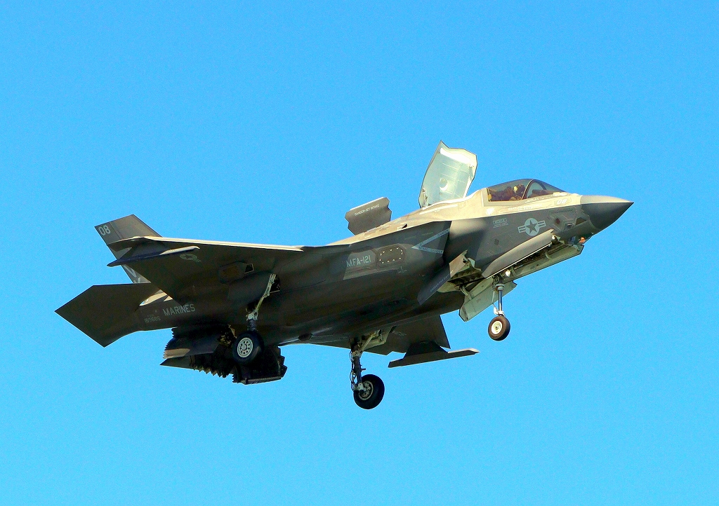 米海兵隊 F-35B ライトニングⅡ 戦闘機(岩国基地)、VK、08番機が帰還、短距離着陸