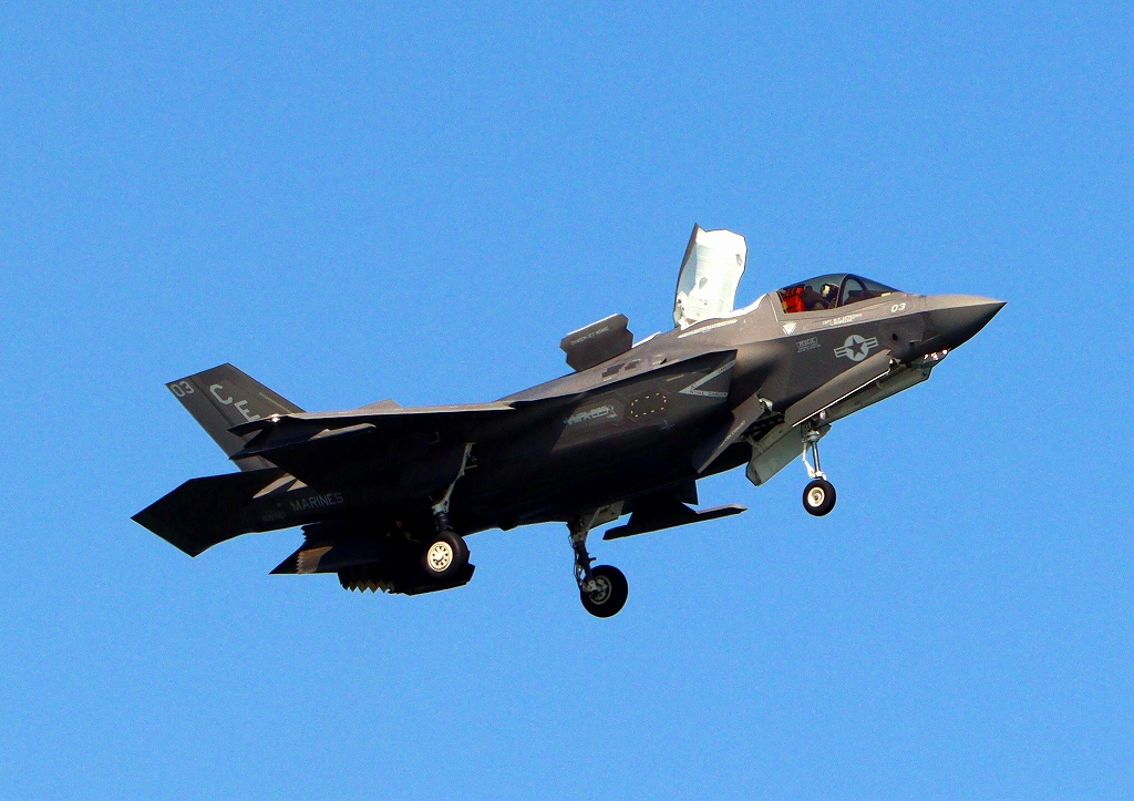 米海兵隊 F-35B ライトニングⅡ 戦闘機(岩国基地)、CE、03番機が帰還、短距離着陸