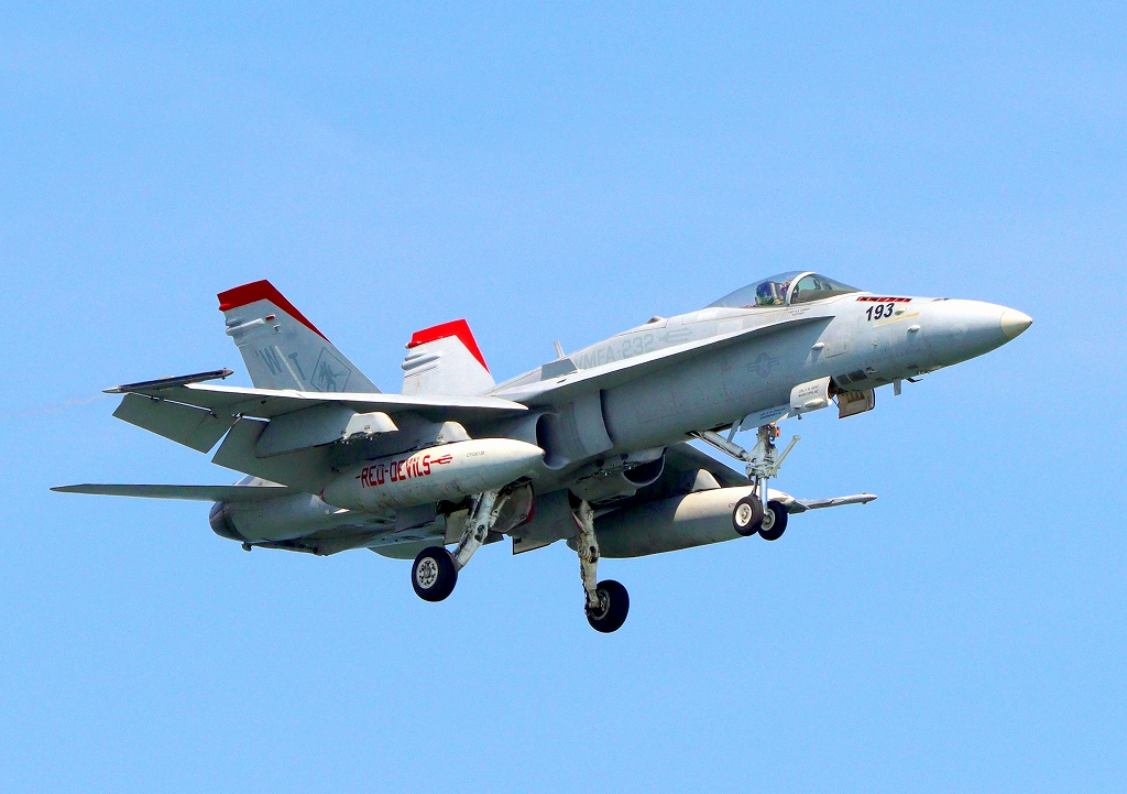 米海兵隊 F/A-18C ホーネット 戦闘攻撃機(岩国基地)、WK、193番機が帰還、着陸