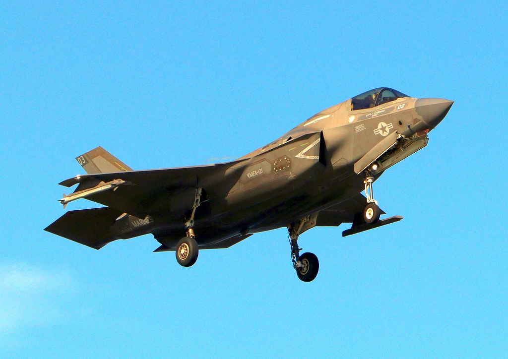 米海兵隊 F-35B ライトニングⅡ 戦闘機(岩国基地)、VK、03番機が帰還、着陸