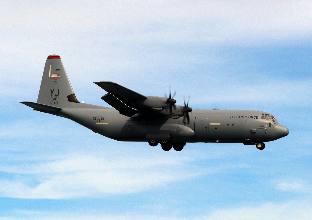 米空軍 C-130J 戦術輸送機 ハーキュリーズ(横田基地)、YJ、840番機が飛来