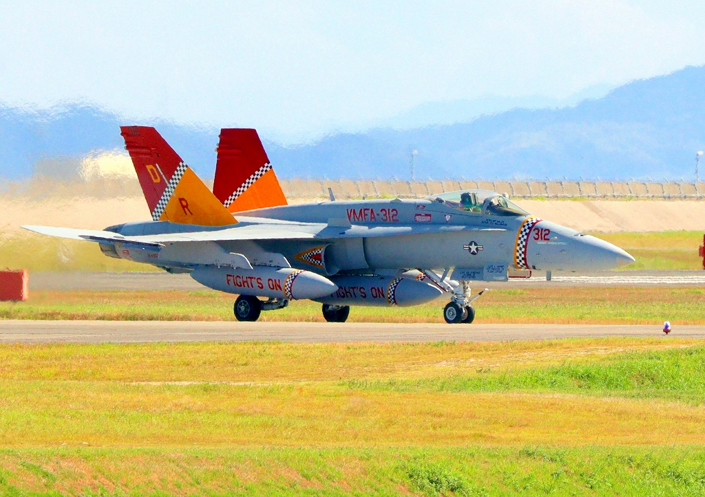 米海兵隊 F/A-18C ホーネット 戦闘攻撃機(岩国基地)、DR、312番機が着陸飛来