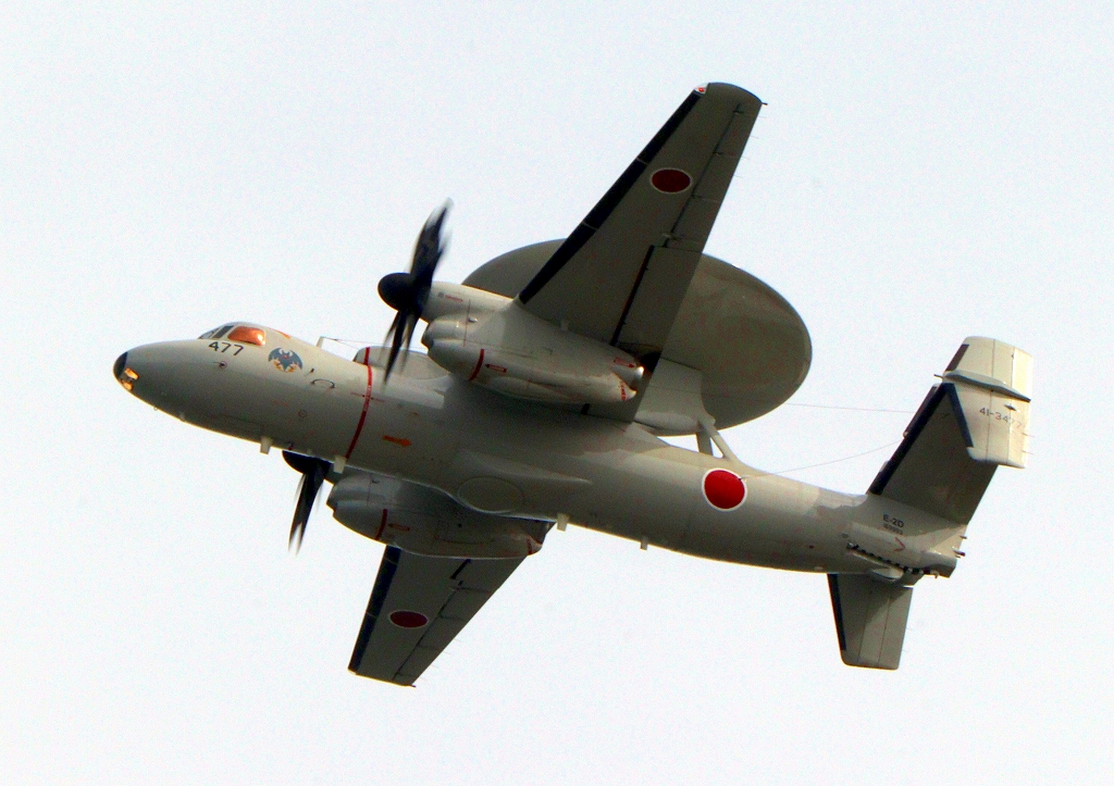 航空自衛隊 E-2D アドヴァンスド・ホークアイ 早期警戒機(三沢基地)、41-3477番機が離陸