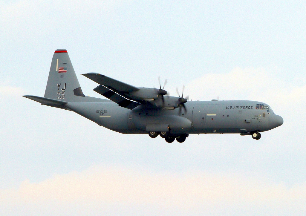 米空軍 C-130J 戦術輸送機 ハーキュリーズ(横田基地)、YJ、36AS 5813番機が飛来