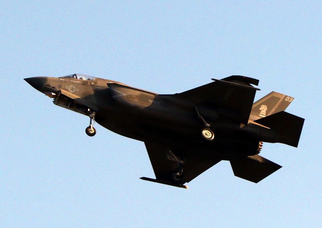 米海兵隊 F-35B ライトニングⅡ 戦闘機(岩国基地)、VK、03番機が旋回