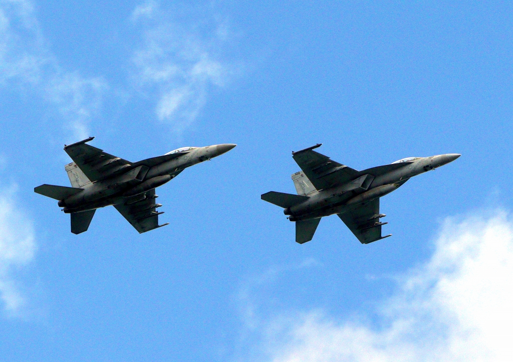 米海軍艦載機 F/A-18F スーパーホーネット 戦闘攻撃機(岩国基地)、NF、100番機、107番機が帰還