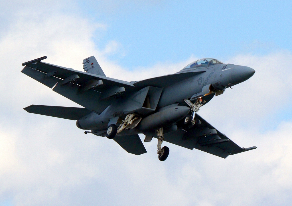 米海軍艦載機 F/A-18F スーパーホーネット 戦闘攻撃機(岩国基地)、NF、116番機が帰還、着陸