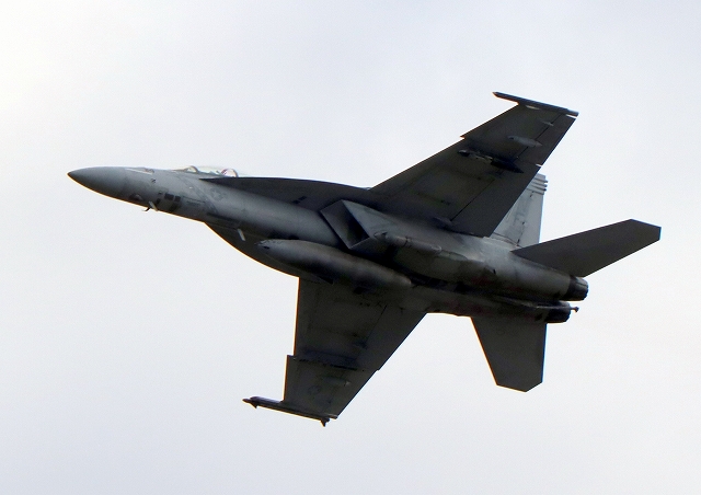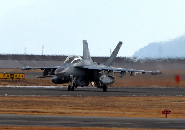 米海軍艦載機 F/A-18F スーパーホーネット 戦闘攻撃機(岩国基地)、NF、114番機が離陸 |