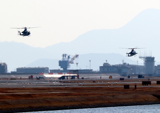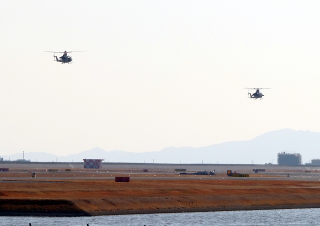 米海兵隊 AH-1Z 戦闘攻撃ヘリ バイパー、UH-1Y 汎用ヘリ ベノム(普天間基地) |