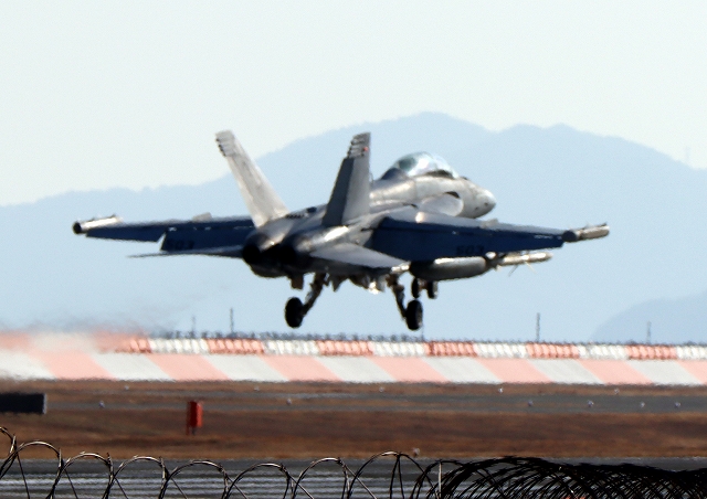 米海軍艦載機 EA-18G グラウラー 電子戦機(岩国基地)、NF、503番機が着陸