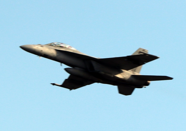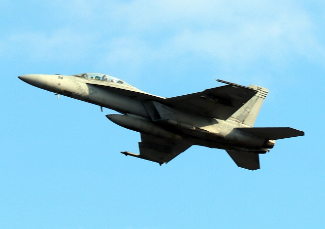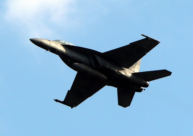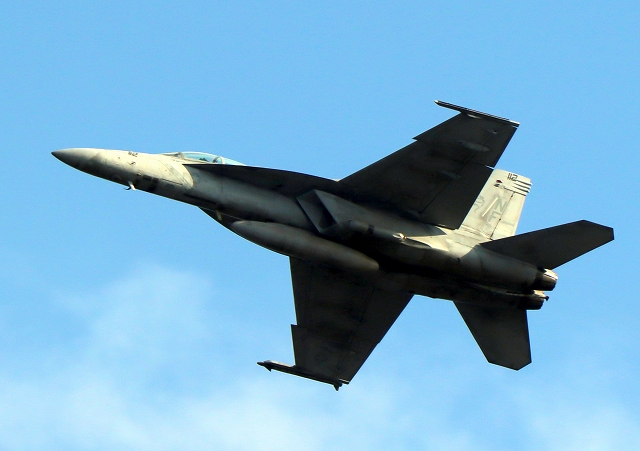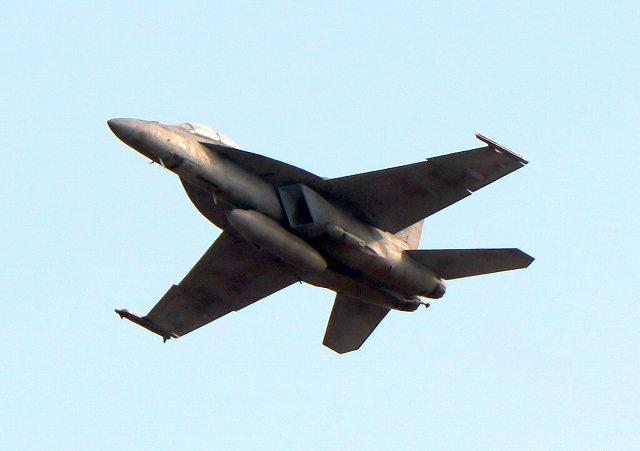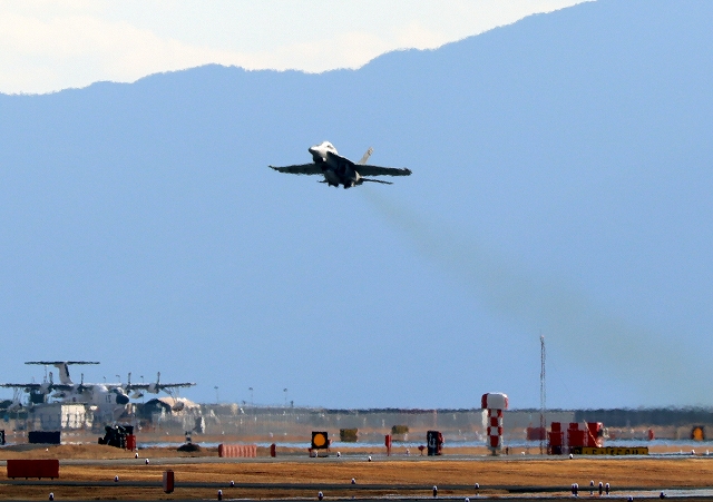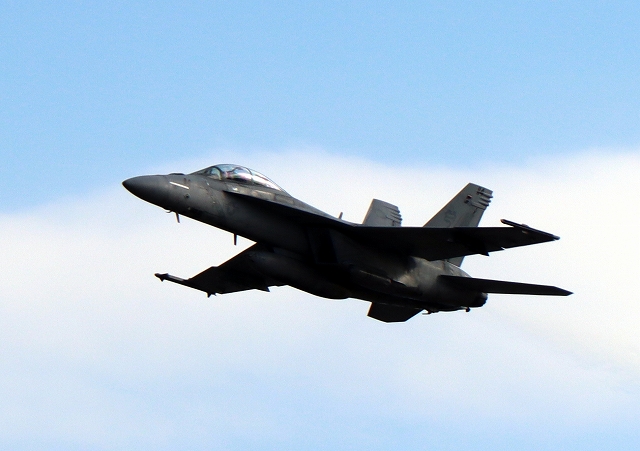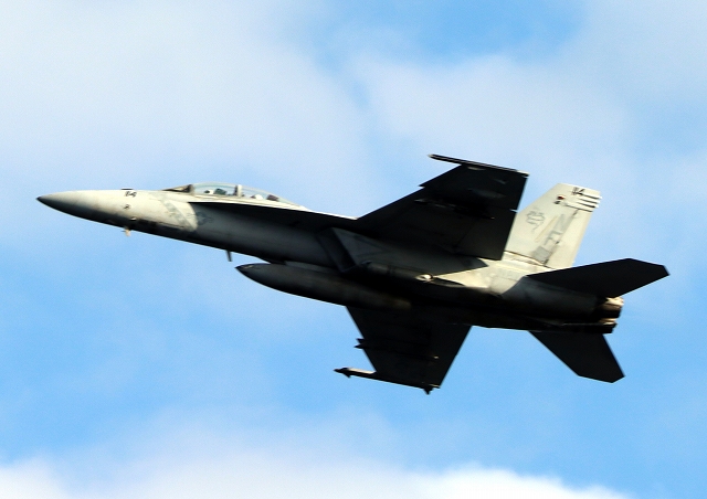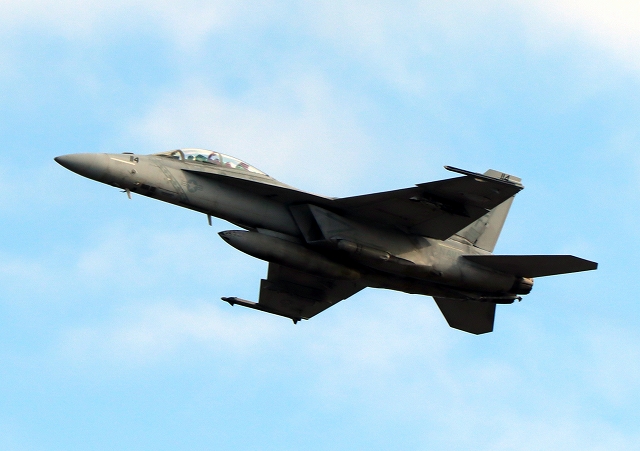 米海軍艦載機 F/A-18F スーパーホーネット 戦闘攻撃機(岩国基地)、NF、112番機が離陸 |