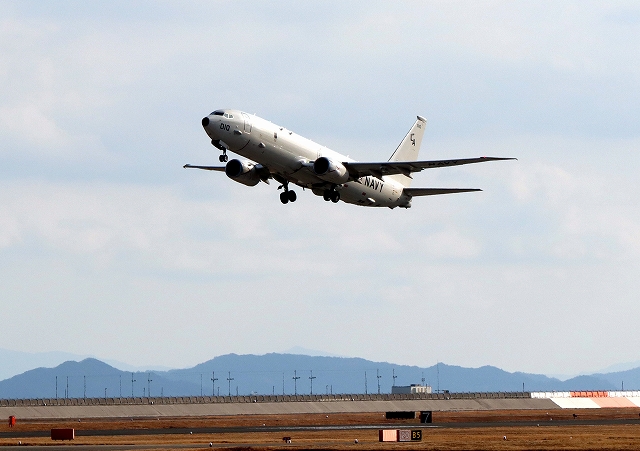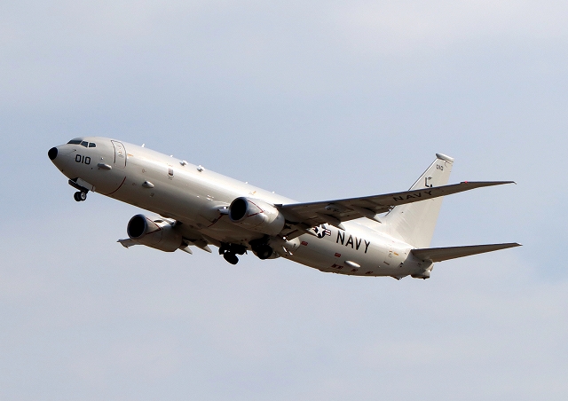米海軍 P-8A 海上哨戒機 ポセイドン(嘉手納基地、三沢基地)、LA、010番機が離陸 |