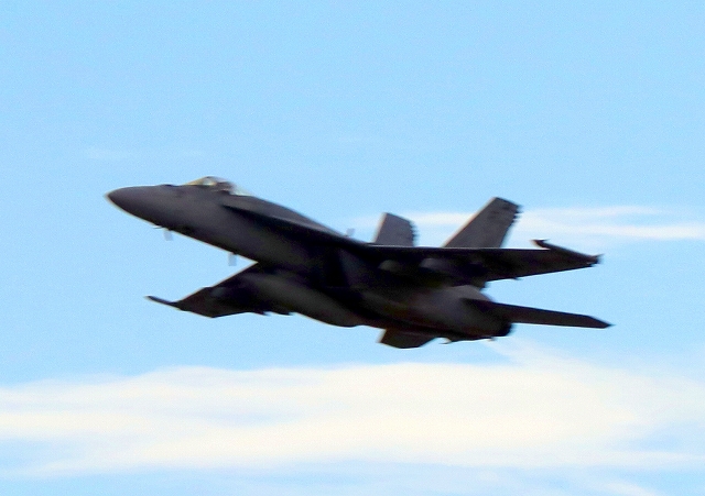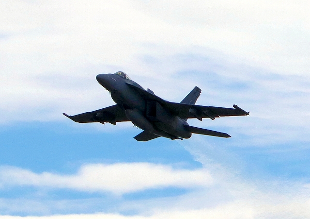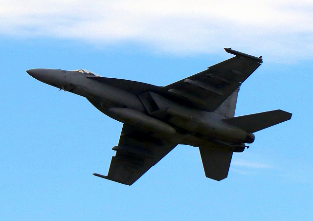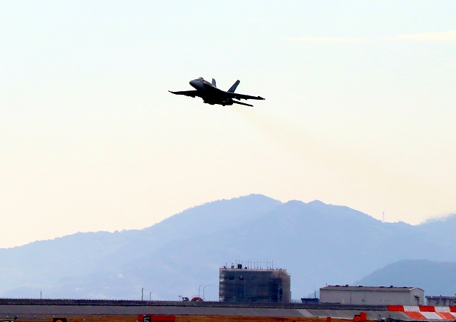 米海軍艦載機 F/A-18E スーパーホーネット 戦闘攻撃機(岩国基地)、NF、311番機が離陸 |