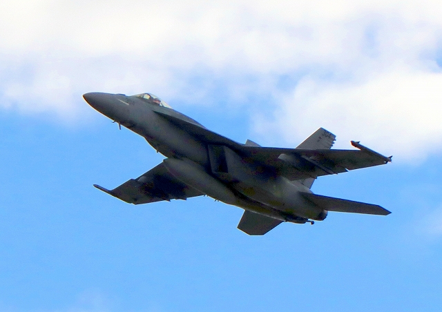 米海軍艦載機 F/A-18E スーパーホーネット 戦闘攻撃機(岩国基地)、NF、304番機が離陸 |