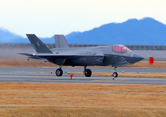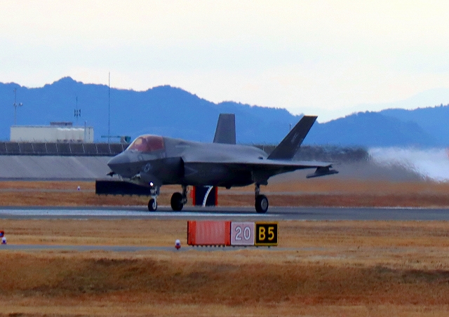 米海兵隊 F-35B ライトニングⅡ 戦闘機(岩国基地)、DT、13番機が着陸 |