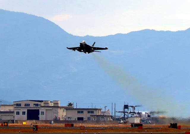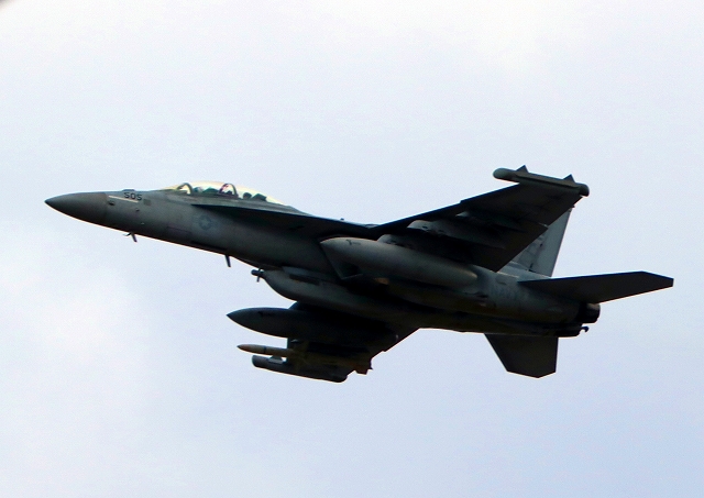 米海軍艦載機 EA-18G グラウラー 電子戦機(岩国基地)、NF、505番機が離陸 |