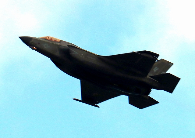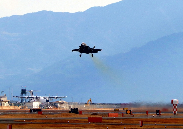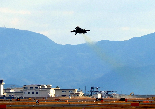 米海兵隊 F-35B ライトニングⅡ 戦闘機(岩国基地)、DT、13番機が離陸 |