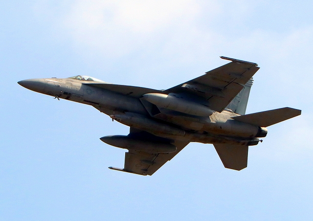 米海軍艦載機 F/A-18E スーパーホーネット 戦闘攻撃機(岩国基地)、NF、210番機が離陸 |