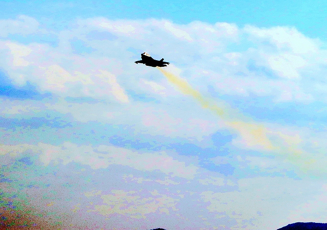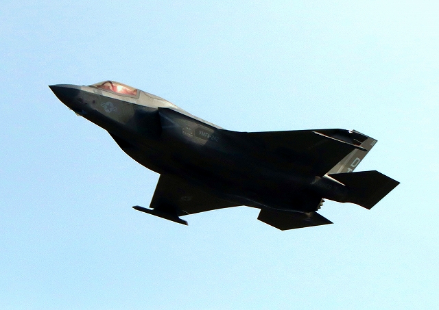 米海兵隊 F-35B ライトニングⅡ 戦闘機(岩国基地)、DT、11番機が離陸 |