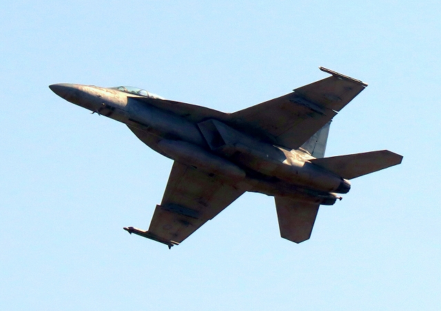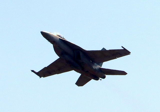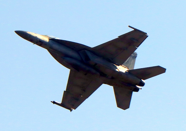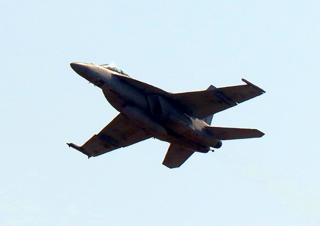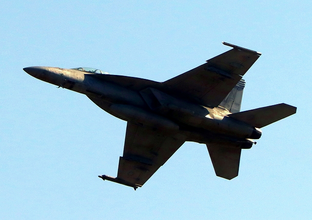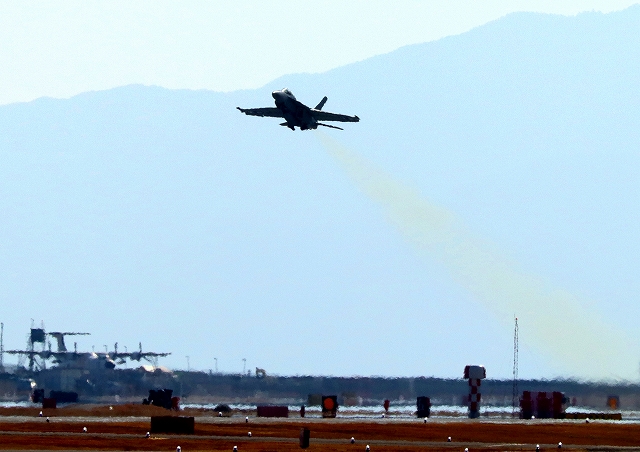 米海軍艦載機 F/A-18F スーパーホーネット 戦闘攻撃機(岩国基地)、NF、112番機が離陸 |