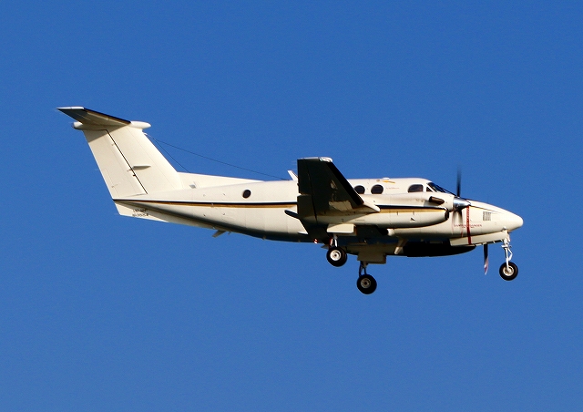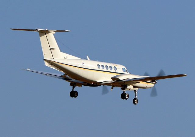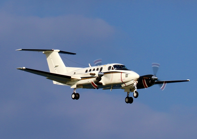 米海軍 UC-12F 軽輸送機(厚木基地)、163554番機が着陸 |