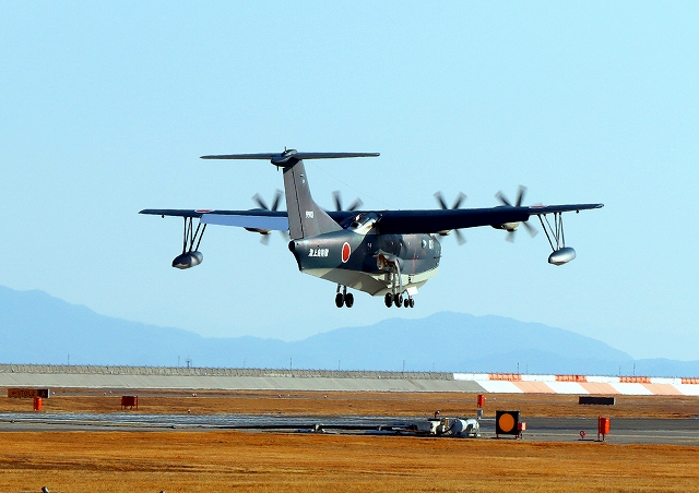 海上自衛隊 US-2 救難飛行艇(岩国基地)、9901番機が着陸 |