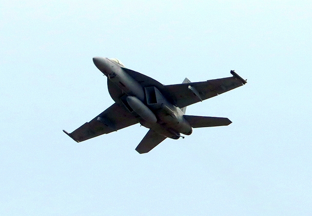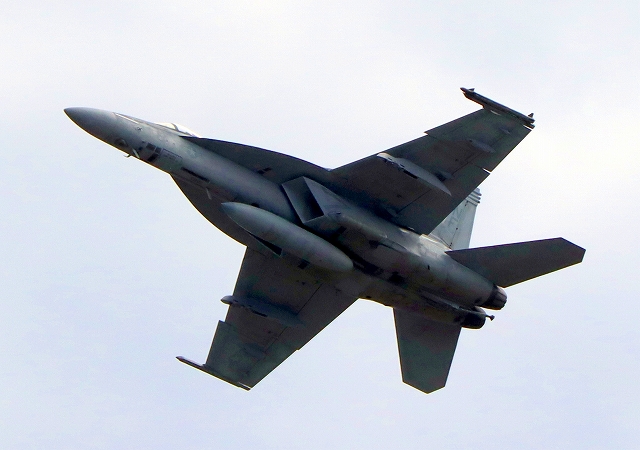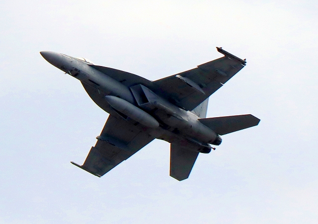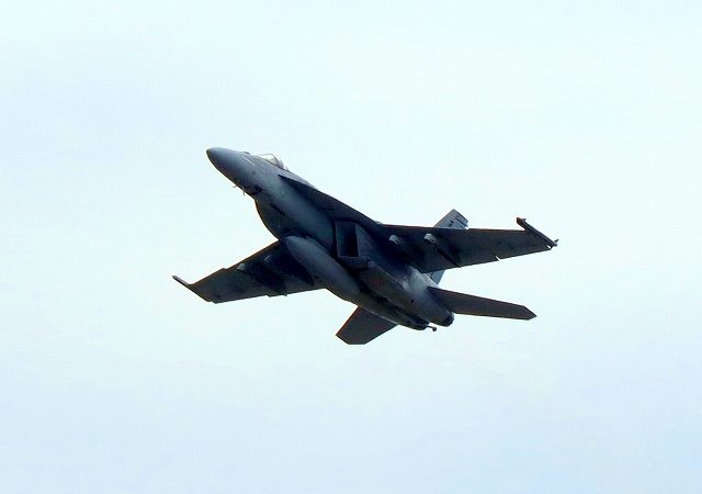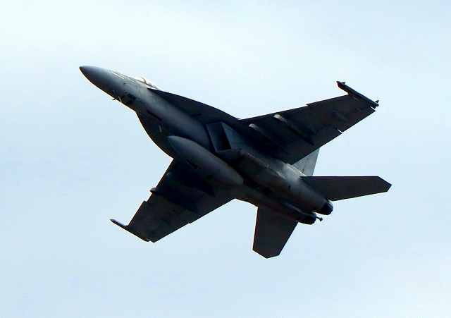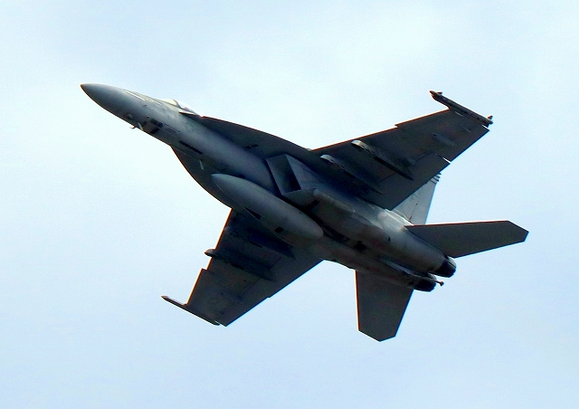 米海軍艦載機 F/A-18E スーパーホーネット 戦闘攻撃機(岩国基地)、NF、203番機が離陸 |