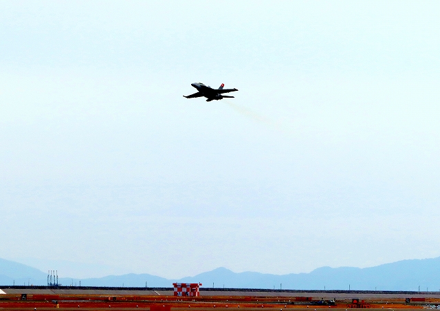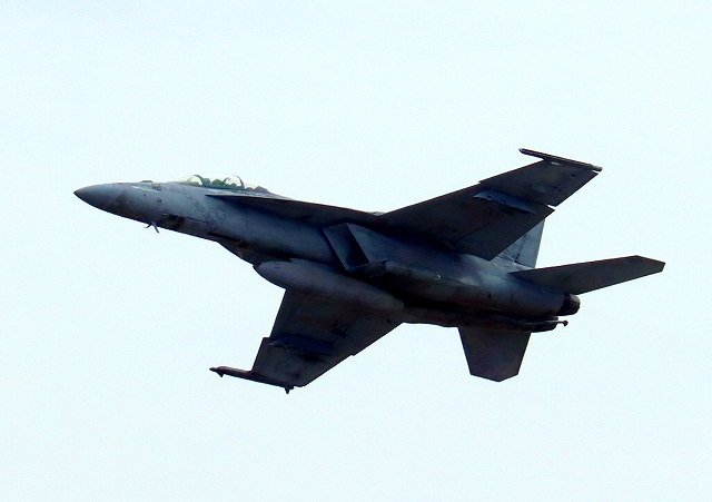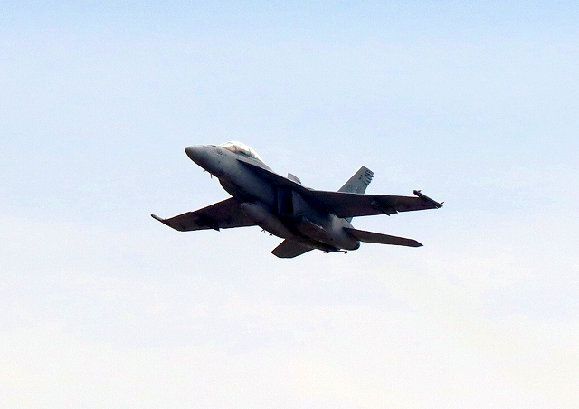 米海軍艦載機 F/A-18F スーパーホーネット 戦闘攻撃機(岩国基地)、NF、112番機が離陸 |