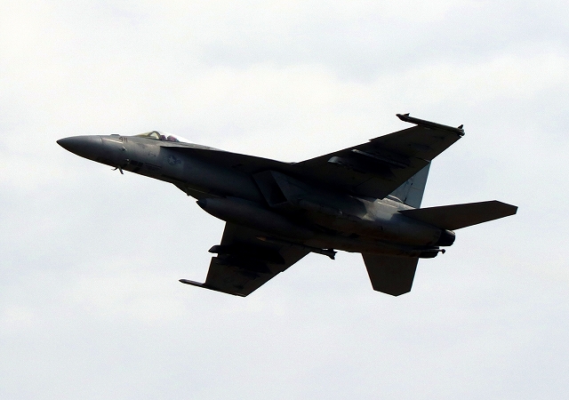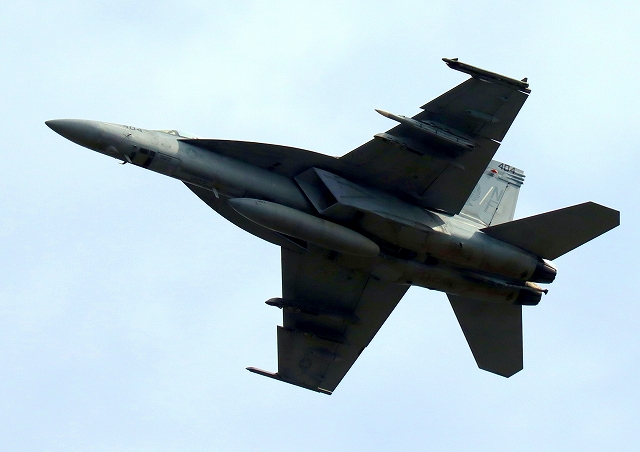 米海軍艦載機 F/A-18E スーパーホーネット 戦闘攻撃機(岩国基地)、NF、411番機が離陸 |